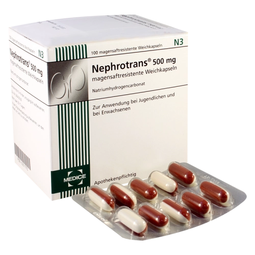 ნეფროტრანსი 500 არის ნატრიუმჰიდროგენკარბონატი, იგივე ბიკარბონატი, კუჭში უხსნად კაფსულაში. ეს იმას ნიშნავს, რომ კაფსულა კუჭის წვენში არ “დნება” და აქტიური ნივთიერების შეწობა ნაწლავებში ხდება, სადაც დისკომფორტი ნაკლებია. სისხლში მოხვედრის შემდეგ ბიკარბონატი ეხმარება pH-ის გათანაბრებას. და როცა ეს ხდება, სხეული ბრუნდება საწყის პოზიციაში და ბევრ სისტემას (კუნთი, ძვალი, თირკმლის ქსოვილი) უფრო მშვიდად მუშაობის საშუალებას აძლევს.
